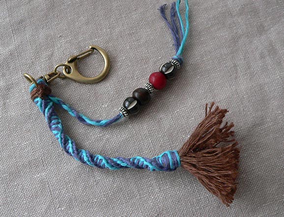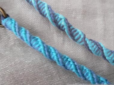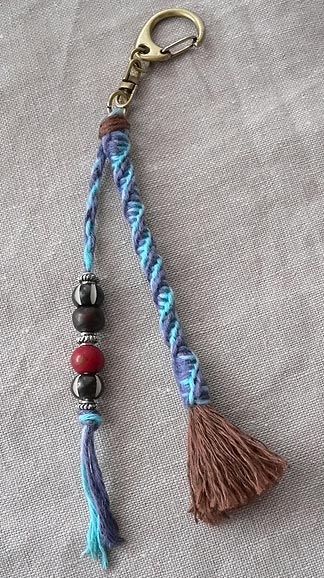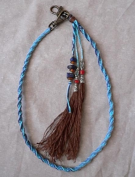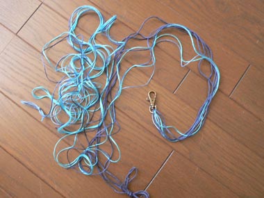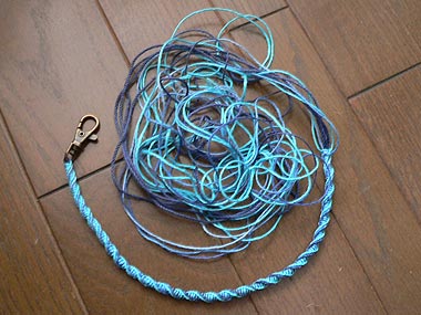ただいま尻尾30センチ。 ターコイズ色のヘンプと青のグラデーションヘンプをダブルねじねじしています。